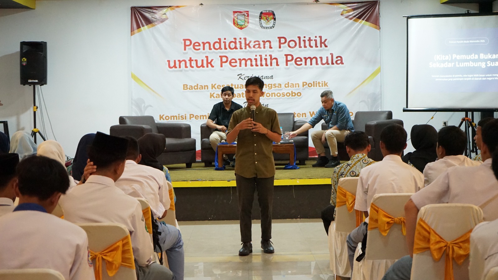 Wonosobo – Komisi Pemilihan Umum (KPU) Kabupaten Wonosobo bekerja sama dengan Kantor Kesatuan Bangsa dan Politik (Kesbangpol) Kabupaten Wonosobo menggelar kegiatan Pendidikan Politik bagi Pemilih Pemula pada Selasa, 30 September 2025 bertempat di Pibee Resto, Wonosobo.