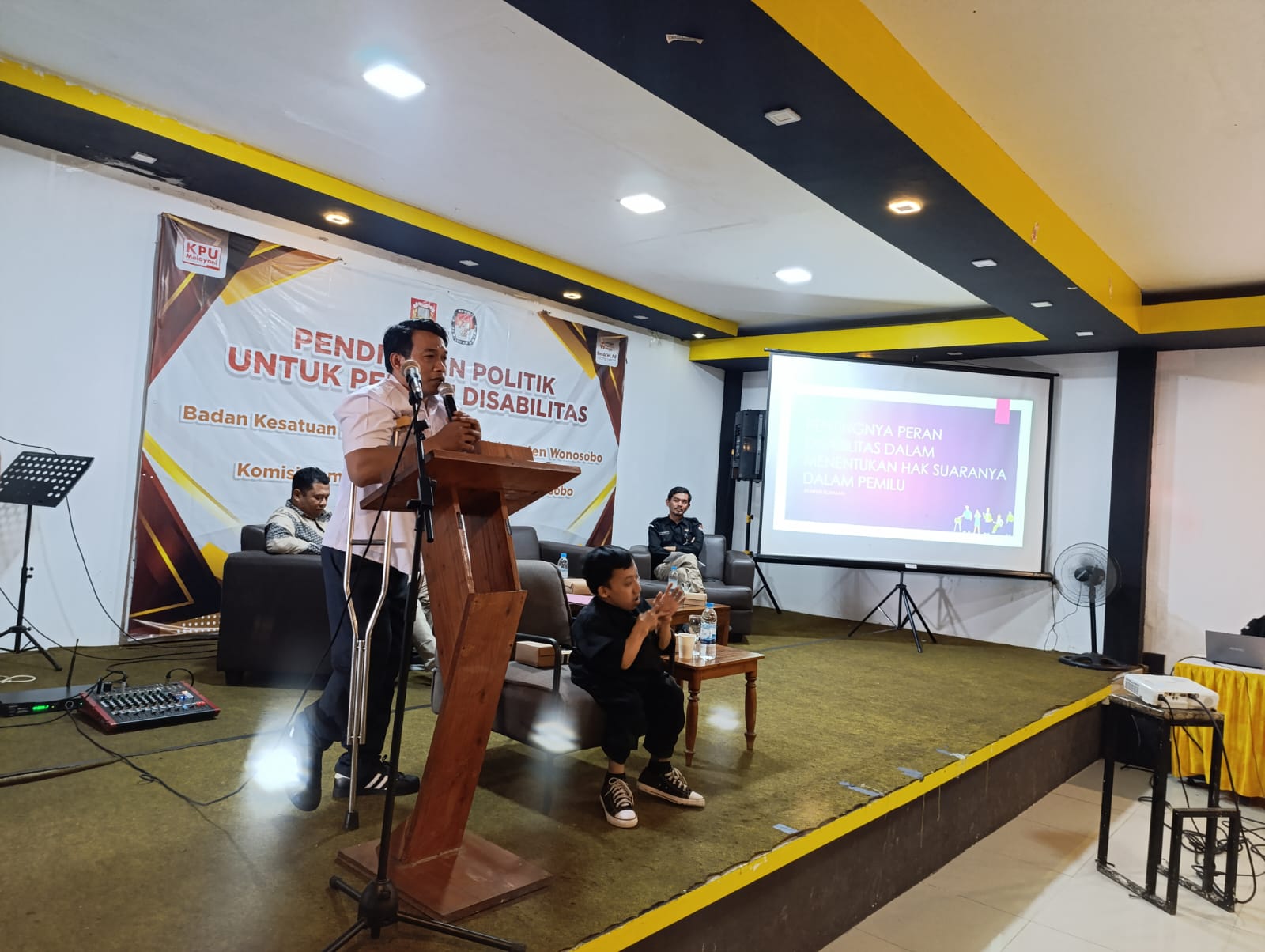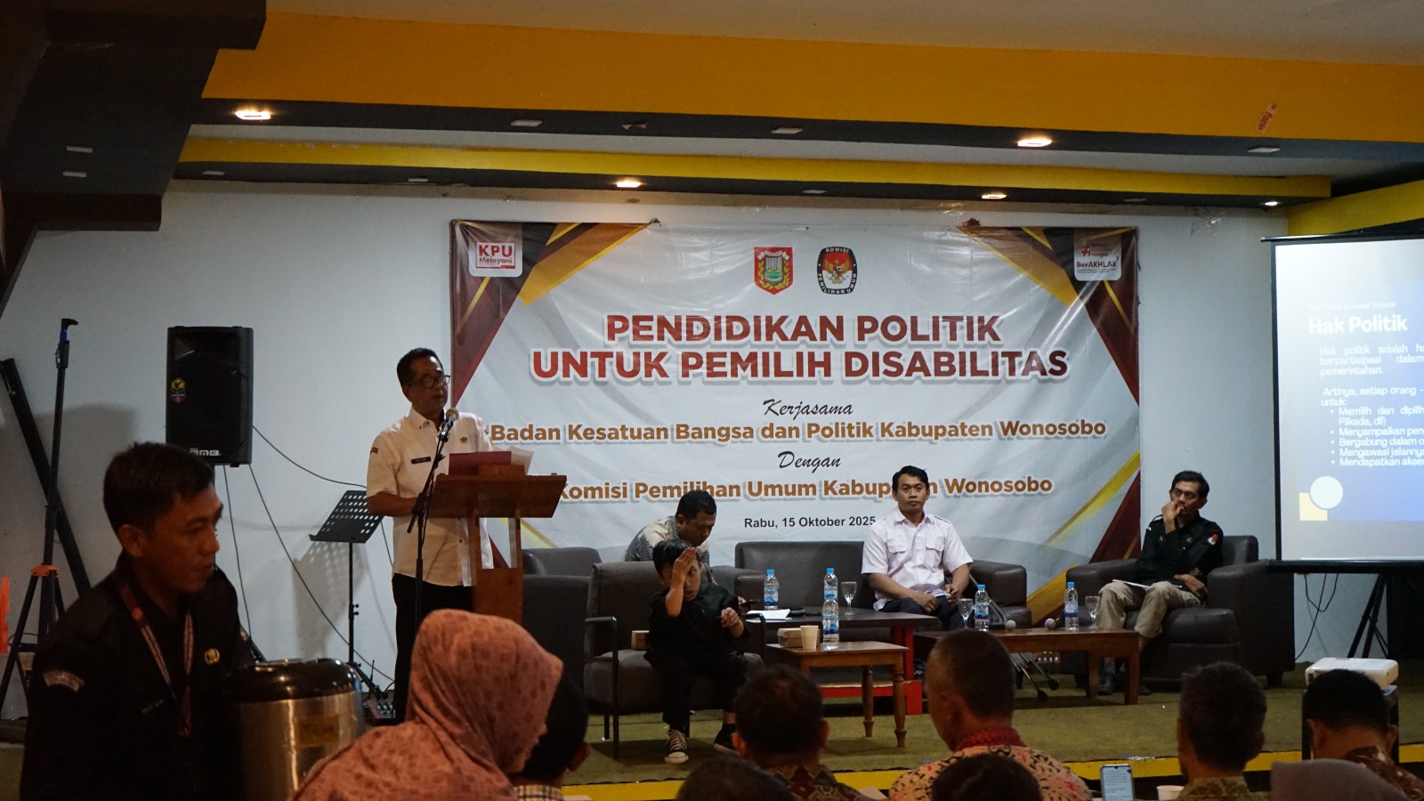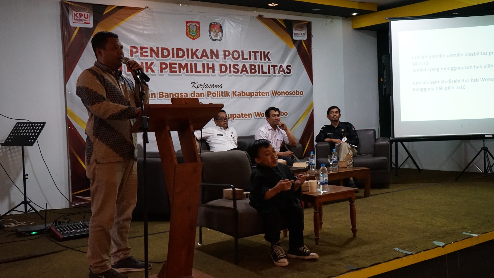 Wonosobo - KPU Kabupaten Wonosobo bekerjasama dengan Badan Kesatuan Bangsa dan Politik (Kesbangpol) Kabupaten Wonosobo menyelenggarakan kegiatan Pendidikan Politik untuk Pemilih Disabilitas di Pibee Resto mulai pukul 08.00 WIB hingga selesai.
