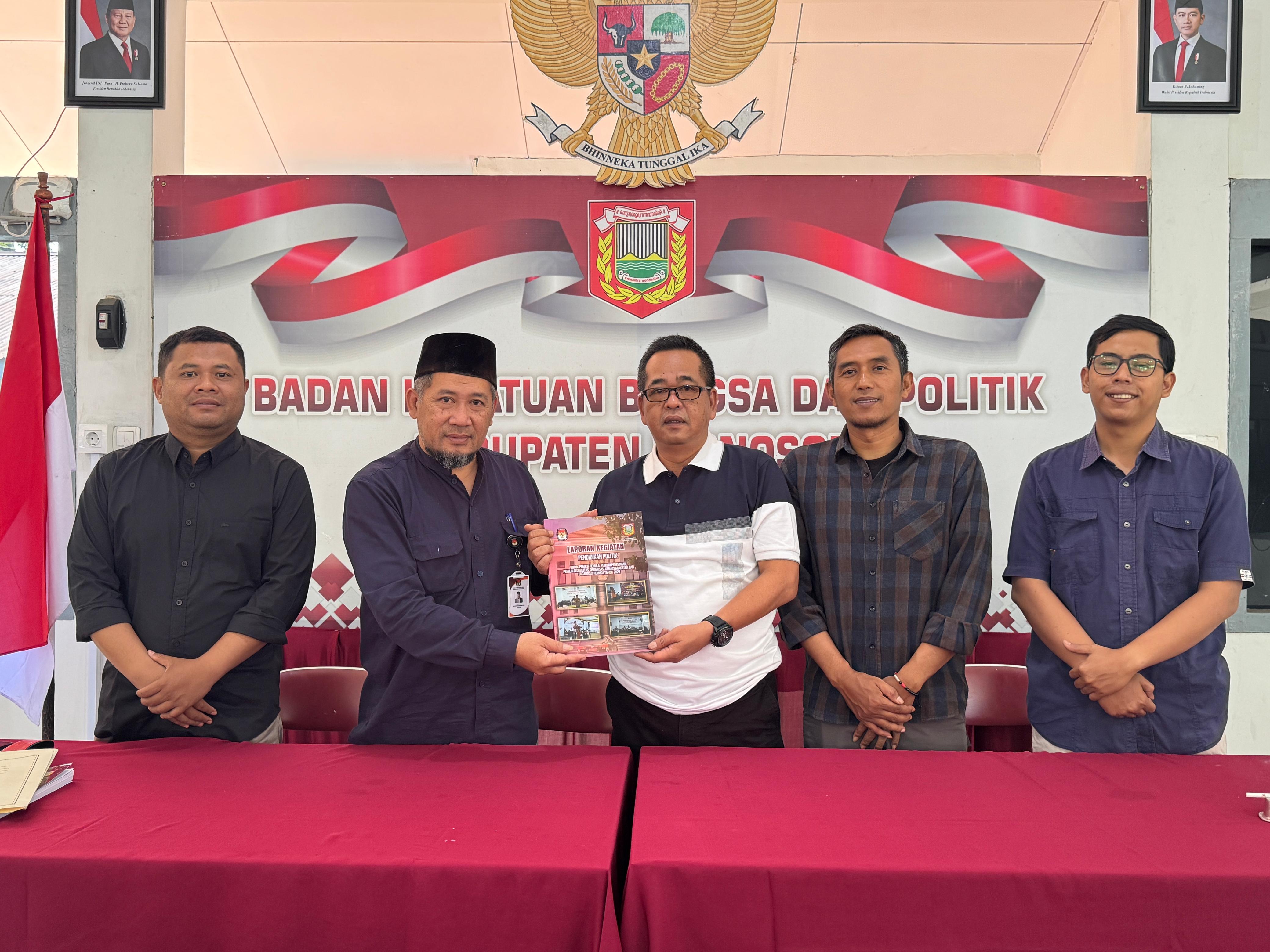 Wonosobo, 7 November 2025 — Komisi Pemilihan Umum (KPU) Kabupaten Wonosobo secara resmi menyerahkan laporan pelaksanaan kegiatan Pendidikan Politik kepada Badan Kesatuan Bangsa dan Politik (Kesbangpol) Kabupaten Wonosobo. Kegiatan ini merupakan bagian dari kerja sama antara kedua lembaga dalam rangka meningkatkan kesadaran dan partisipasi politik masyarakat di Kabupaten Wonosobo.