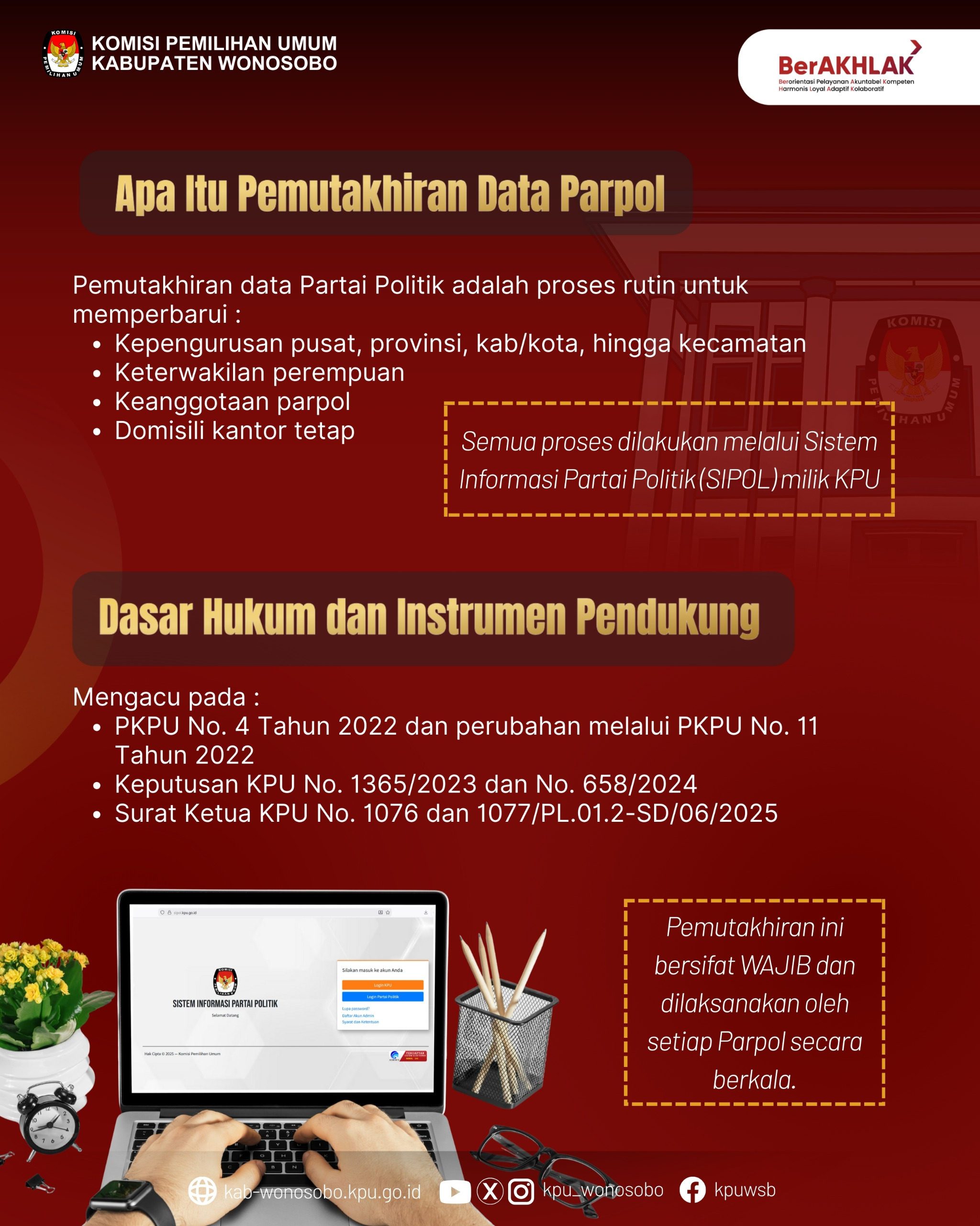 Seturut PKPU Nomor 4 Tahun 2022, KPU memberi ruang bagi partai untuk memperbarui data kepengurusan, kantor, hingga keanggotaan secara berkelanjutan. Semua disiapkan melalui Sipol, sistem digital yang dirancang agar partai bisa merawat “tulang punggung” organisasinya setiap saat secara berkelanjutan, tidak hanya menjelang Pemilu.