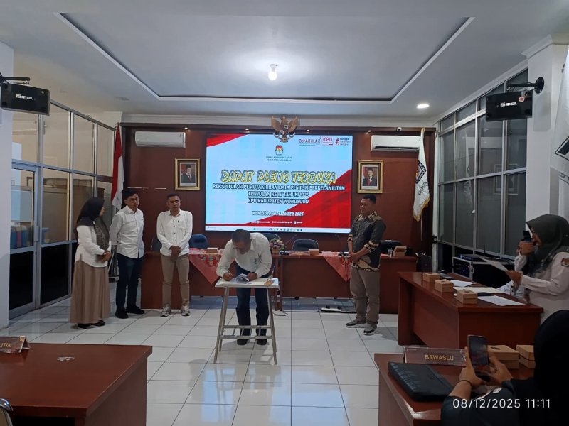 Pelaksanaan rapat pleno dipimpin oleh Ketua KPU Kabupaten Wonosobo, Bapak Ruliawan Nugroho. Selanjutnya adalah pembacaan tata tertib rapat pleno oleh anggota KPU Divisi Teknis Penyelenggaraan Pemilu, Bapak Robingul Ahsan. Pembacaan rekapitulasi pemutakhiran data pemilih berkelanjutan dilakukan oleh anggota KPU divisi perencanaan, data dan informasi, Ibu Yusy Arafah. Rekapitulasi Daftar Pemilih Berkelanjutan Triwulan IV Tahun 2025 tingkat Kabupaten Wonosobo berjumlah 723.714 pemilih. Terdiri dari 367.045 pemilih laki – laki dan 356.669 pemilih perempuan yang tersebar di 265 Desa / Kelurahan, dan 15 Kecamatan. Terdapat 9.543 pemilih baru 4.859 pemilih tidak memenuhi syarat dan 388 pemilih ubah.