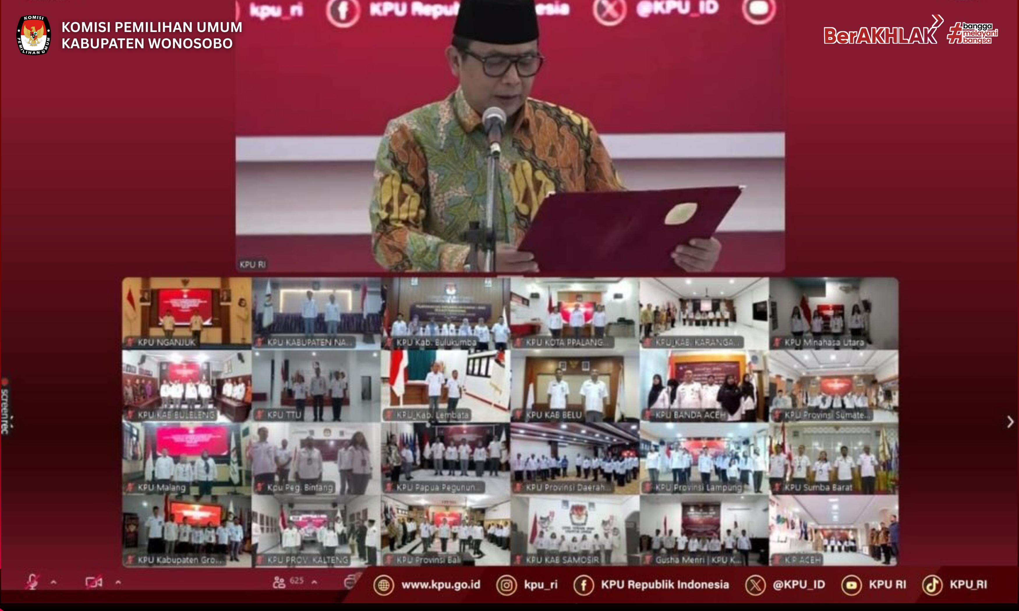 Komisi Pemilihan Umum (KPU) Kabupaten Wonosobo mengikuti pelantikan dan Pengambilan Sumpah / Janji Pejabat Fungsional KPU yang dilaksanakan di Aula Kantor KPU Kabupaten Wonosobo secara daring bersama KPU Republik Indonesia. Pelantikan tersebut dipimpin langsung oleh Sekretaris Jenderal KPU RI, Bernad Dermawan Sutrisno.