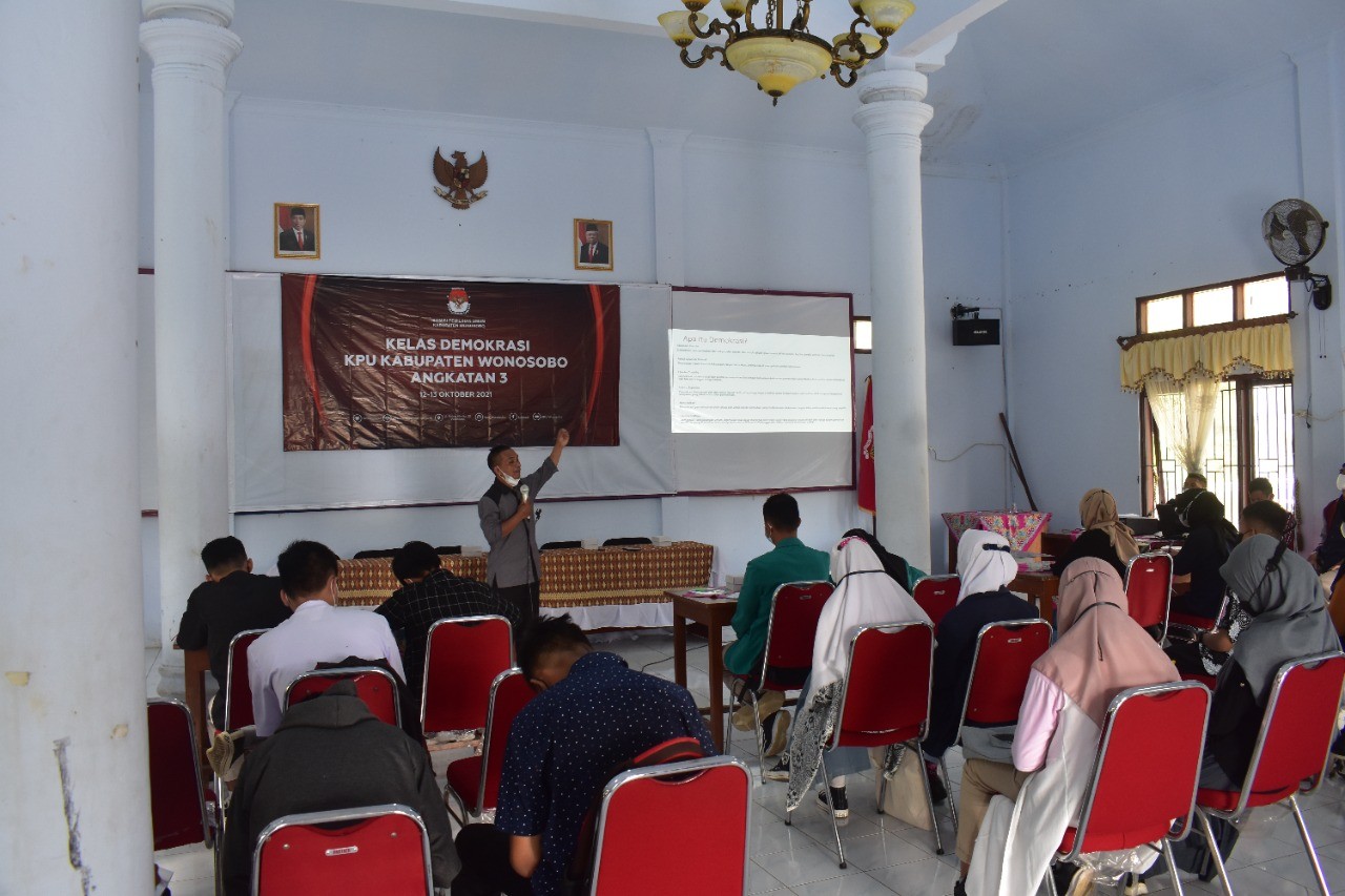 Komisi Pemilihan Umum Kabupaten Wonosobo kembali menyelenggarakan Program Pendidikan Pemilih melalui Kelas Demokrasi. Kegiatan yang berlangsung tanggal 12 - 13 Oktober 2021 ini melibatkan perwakilan dari sekolah dan masyarakat yang berasal dari Kecamatan Wadaslintang, Kecamatan Kaliwiro, Kecamatan Kalibawang, Kecamatan Leksono dan Kecamatan Sukoharjo.