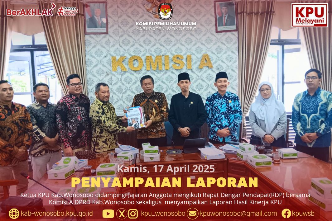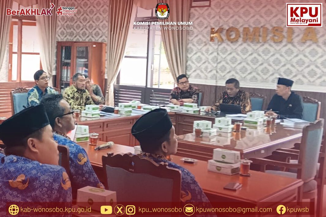 Wonosobo, 17 April 2025 – Komisi Pemilihan Umum (KPU) Kabupaten Wonosobo menggelar Rapat Dengar Pendapat (RDP) bersama Komisi A DPRD Kabupaten Wonosobo di Ruang Rapat Komisi A, Gedung DPRD Kabupaten Wonosobo, pada Kamis (17/4).