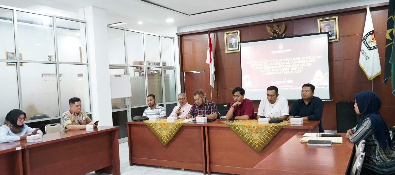 KPU WONOSOBO SERAHKAN BERITA ACARA PENELITIAN PERSYARATAN ADMINITRASI HASIL PERBAIKAN PASANGAN CALON BUPATI DAN WAKIL BUPATI WONOSOBO TAHUN 2024