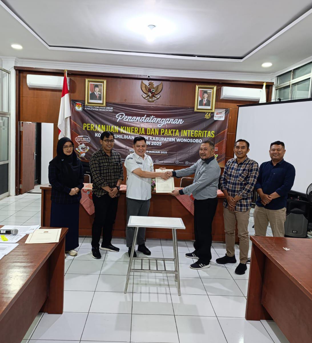 KPU Kabupaten Wonosobo melaksanakan kegiatan Penandatanganan Perjanjian Kinerja dan Pakta Integritas Komisi Pemilihan Umum Kabupaten Wonosobo. Kegiatan dilaksanakan di aula Kantor KPU Kabupaten Wonosobo pada tanggal 9 Januari 2025. Kegiatan ini diikuti oleh seluruh komisioner dan sekretariat KPU Kabupaten Wonosobo.