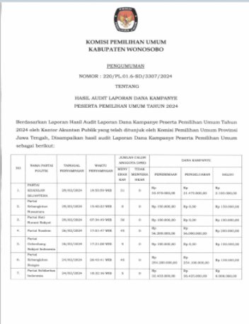 PENGUMUMAN HASIL AUDIT DANA KAMPANYE PADA PEMILU TAHUN 2024