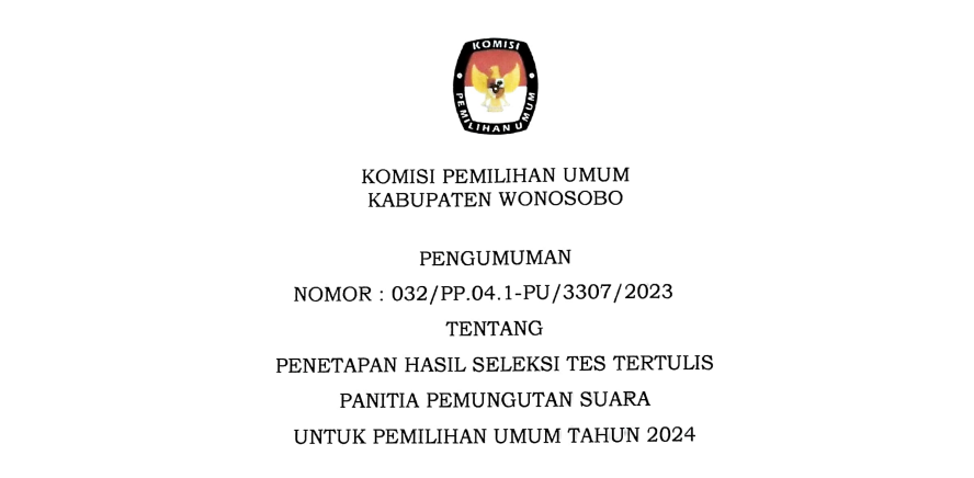 PENGUMUMAN HASIL SELEKSI TERTULIS PPS PEMILU TAHUN 2024 Jumat, 13 Januari 2023 11:00 545 PENGUMUMAN TES SELEKSI TERTULIS PPS PEMILU TAHUN 2024 DOWNLOAD DISINI Bagikan: Dilihat 545 Kali.