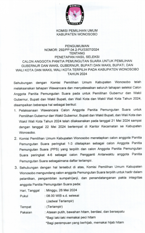 PENGUMUMAN PENETAPAN HASIL SELEKSI CALON ANGGOTA PPS PILKADA 2024 dapat di download disini