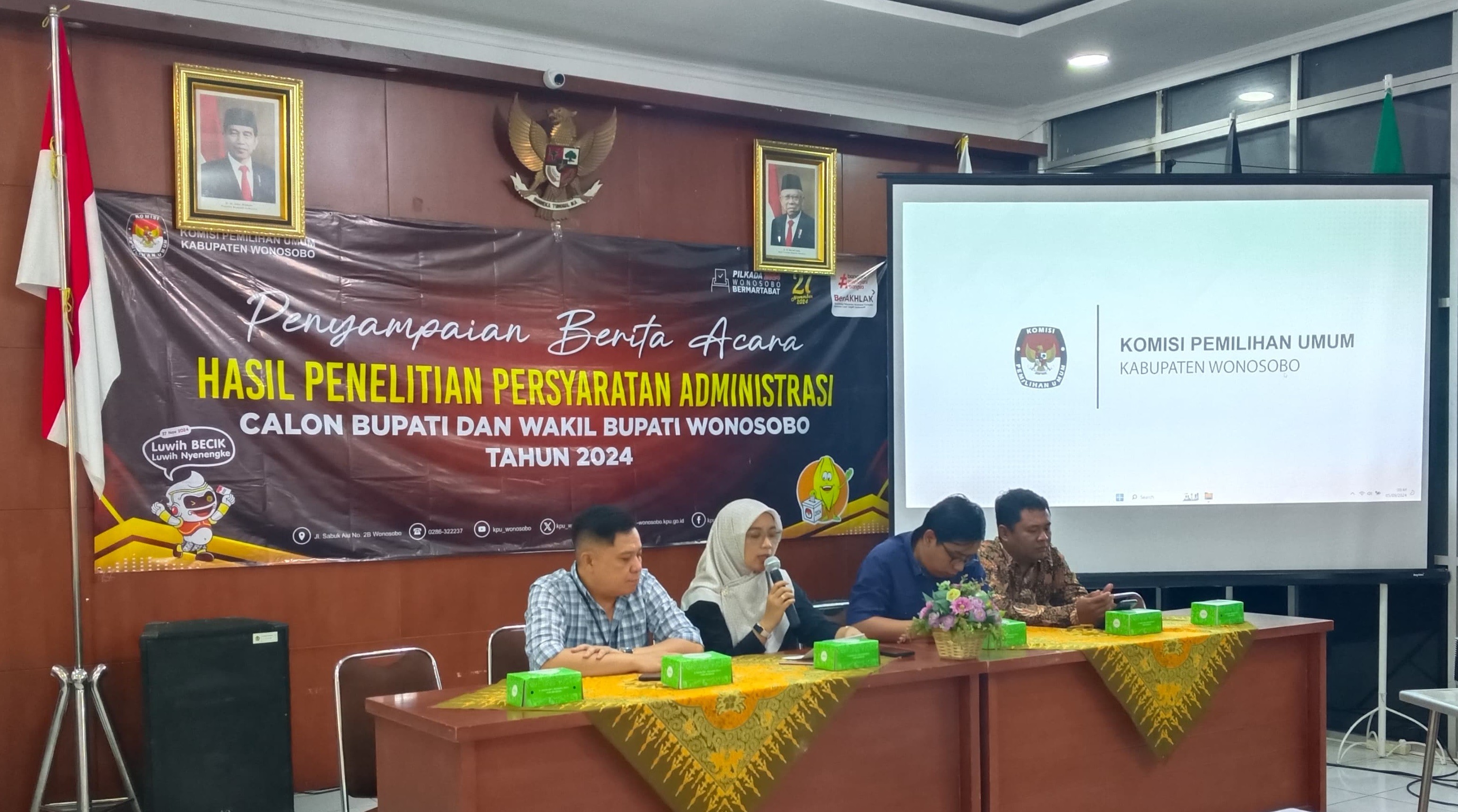 PENYAMPAIAN BERITA ACARA PENELITIAN PERSYARATAN ADMINISTRASI CALON PASANGAN CALON BUPATI DAN WAKIL BUPATI WONOSOBO TAHUN 2024