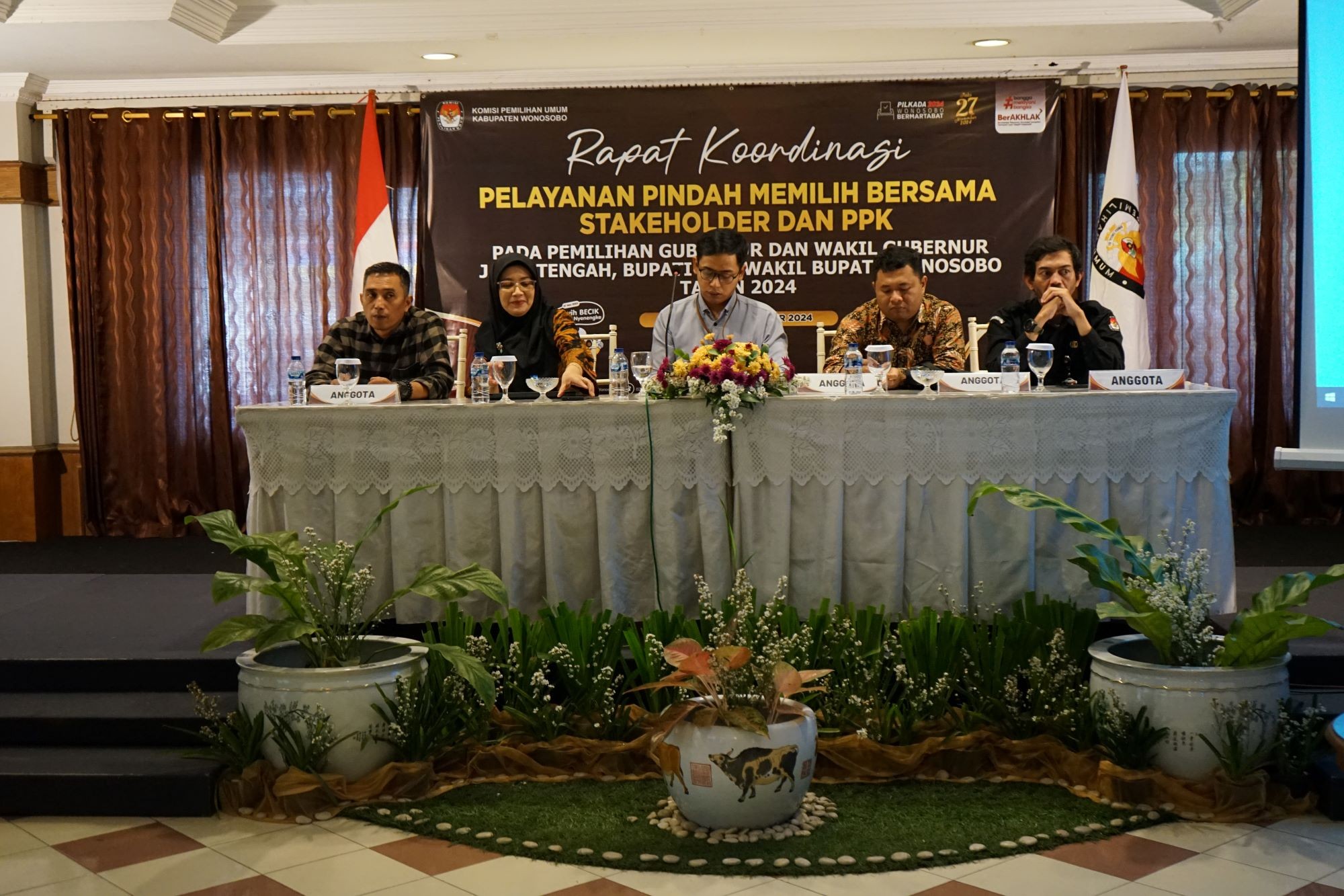 KPU Kabupaten Wonosobo melaksanakan rapat koordinasi pelayanan pindah memilih bersama Stakeholder dan PPK pada Pemilihan Gubernur dan Wakil Gubernur Jawa Tengah, Bupati dan Wakil Bupati Wonosobo Tahun 2024. Rapat koordinasi dilaksanakan pada hari Rabu, 9 Oktober 2024 di Hotel Surya Asia, Wonosobo. Kegiatan rapat koordinasi diikuti oleh Forkompimda, Dinas / Instansi terkait, Pondok Pesantren, Rumah Sakit dan Anggota PPK divisi data dan Informasi Se Kabupaten Wonosobo, beserta jajaran Komisioner dan Sekretariat KPU Kabupaten Wonosobo.