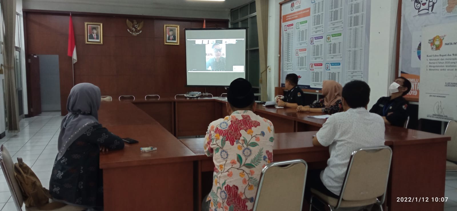 Wonosobo, 12 Januari 2022 – Rapat Kerja Sinkronisasi RAB Pemilihan Serentak Tahun 2024 di KPU Provinsi Jawa Tengah melalui media daring pada pukul 09.00 WIB sampai dengan selesai yang dihadiri oleh Ketua KPU, Anggota KPU, Sekretaris dan Kasubbag Program Data di Ruang Rapat KPU Kabupaten Wonosobo dengan menggunakan media daring (zoom meeting). Rapat diawali dengan mendengarkan lagu Indonesia Raya. Ketua KPU Provinsi Jawa Tengah menyampaikan beberapa hal terkait anggaran Pemilihan Serentak tahun 2024 dengan 14 pos anggaran yang diusulkan ke Pemerintah Daerah. Sekretaris KPU Provinsi Jawa Tengah memberikan arahan ke KPU Kabupaten Kota Se-Jawa Tengah untuk melakukan sinkronisasi RAB dengan anggaran KPU Provinsi. Pembahasan Sinkronisasi RAB dilakukan pertahapan sampai dengan tahapan evaluasi.(IP)