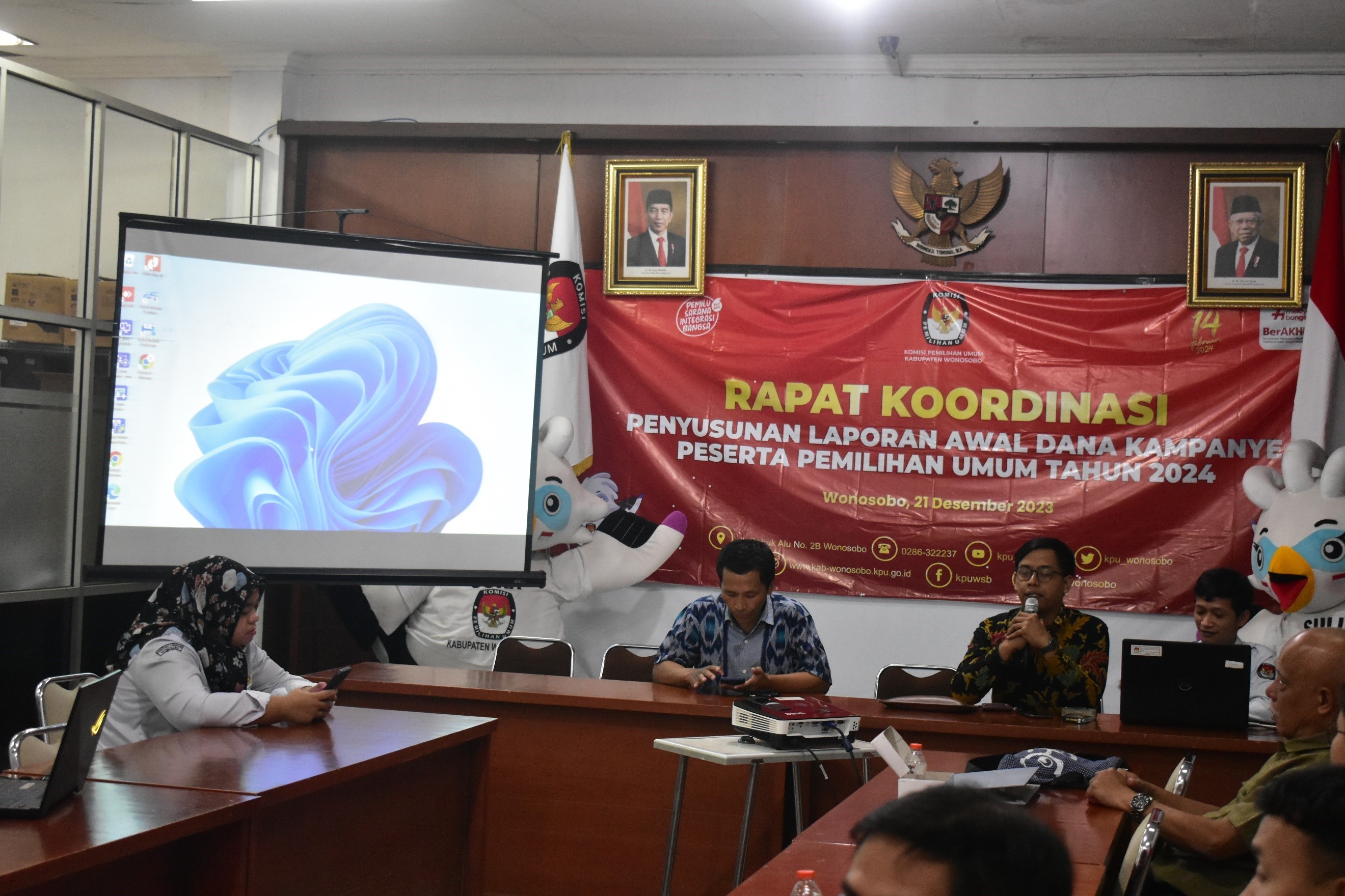 Kamis, 21 Desember Tahun 2023 Komisi Pemilihan Umum Kabupaten Wonosobo mengadakan Rapat Koordinasi Laporan Awal Dana Kampanye Pada Pemilihan Umum Tahun 2024. Pada Kegiatan Rakor ini KPU Kabupaten Wonosobo mengundang Ketua Partai Politik dan Admin SIKADEKA Parpol.