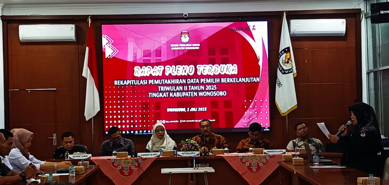 Rapat Pleno Terbuka Rekapitulasi Pemutakhiran Data Pemilih Berkelanjutan (PDPB) Triwulan II Tahun 2025 KPU Kabupaten Wonosobo