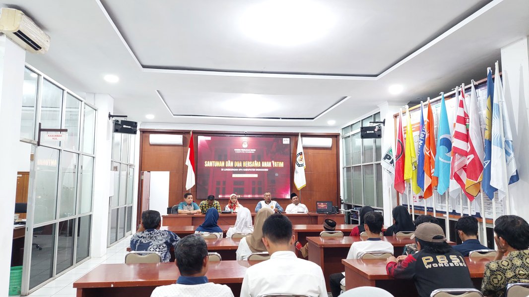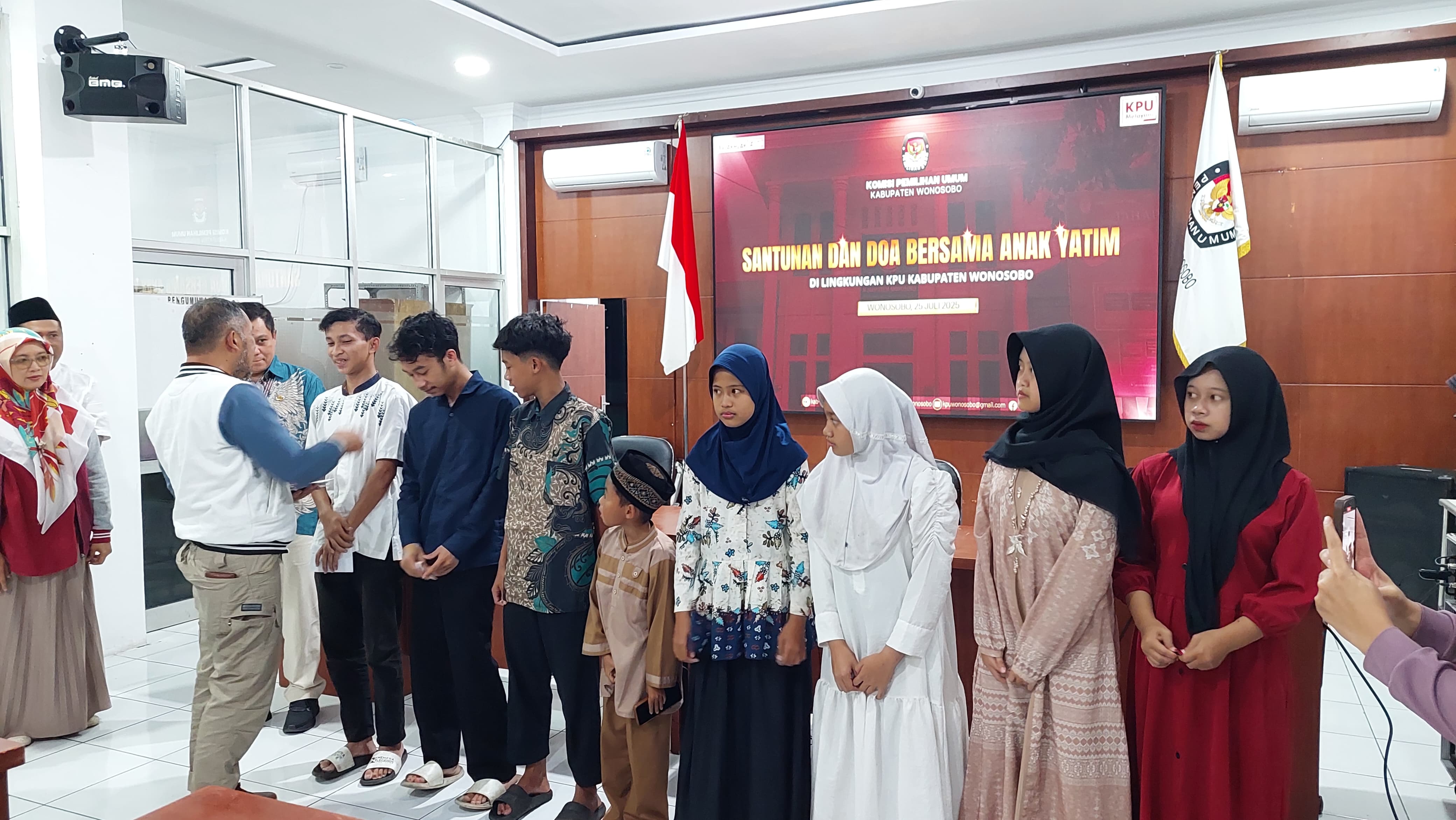 Acara yang berlangsung khidmat ini diawali dengan pembacaan doa bersama, dilanjutkan dengan penyerahan santunan kepada anak-anak yatim. Seluruh jajaran komisioner dan sekretariat KPU Kabupaten Wonosobo turut hadir dan berpartisipasi dalam kegiatan ini.