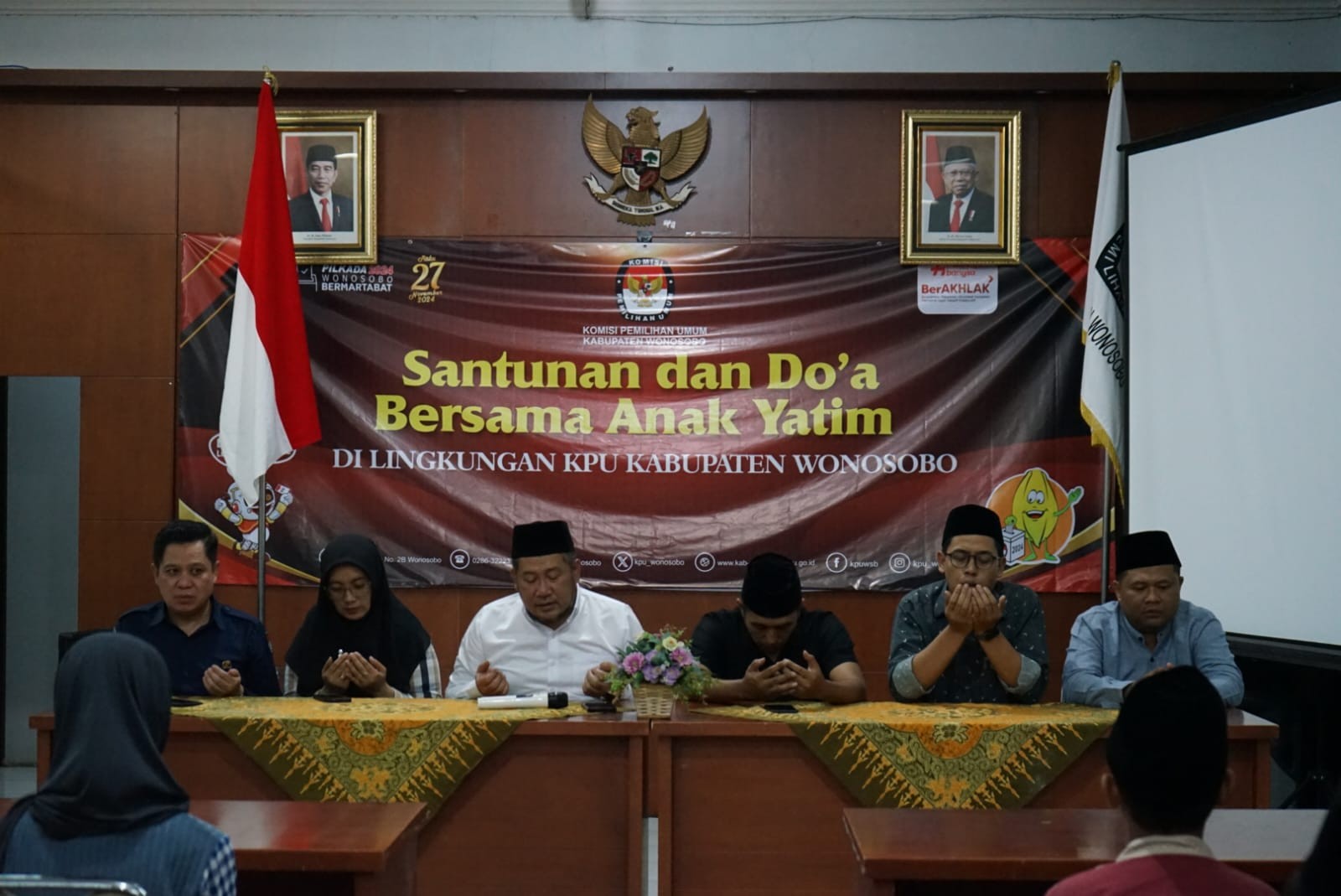 Tepat pada 10 Muharram Komisi Pemilihan Umum Kabupaten Wonosobo mengadakan doa bersama anak yatim dan seluruh jajaran KPU Kabupaten Wonosobo bertempat di Kantor KPU Kabupaten Wonosobo. Dalam Acara ini Ketua KPU Bapak Ruliawan Nugroho memberikan sambutan dengan mengucapkan terima kasih kepada anak yatim dan juga orangtua yang turut hadir dalam acara doa bersama ini. Selanjutnya Bapak Robingul Ahsan memimpin doa bersama dalam acara ini. Acara diakhiri foto bersama dengan semua peserta yang hadir dalam acara ini.