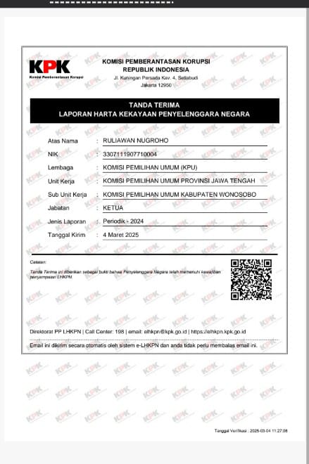 Berikut Laporan Harta Kekayaan Penyelenggara Negara (LHKPN) Komisi Pemilihan Umum Kabupaten Wonosobo periode 2024 :